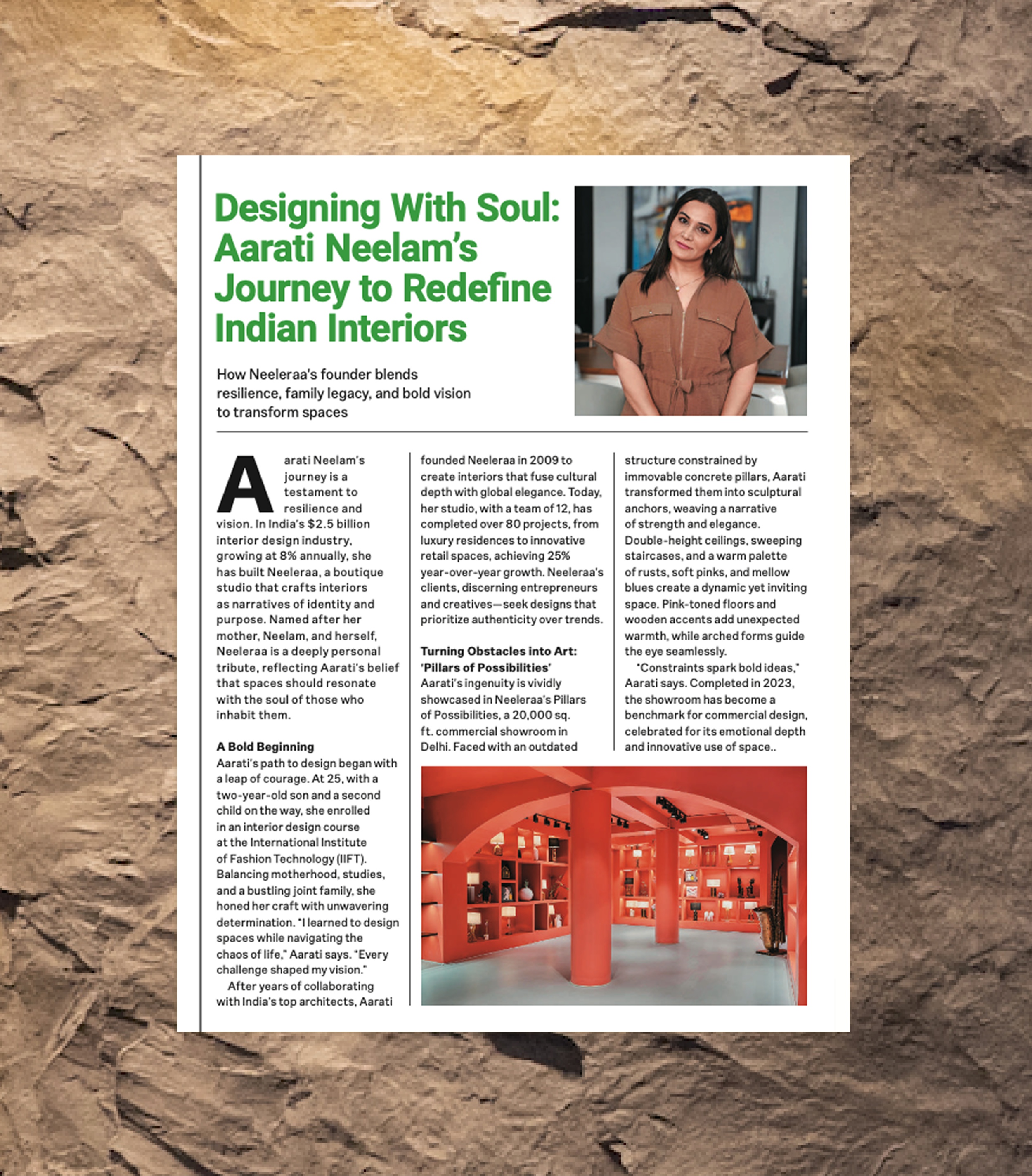 Aarati turned our biggest design challenge into our biggest strength. The pillars we thought were limitations are now stunning features that define our showroom's unique character.