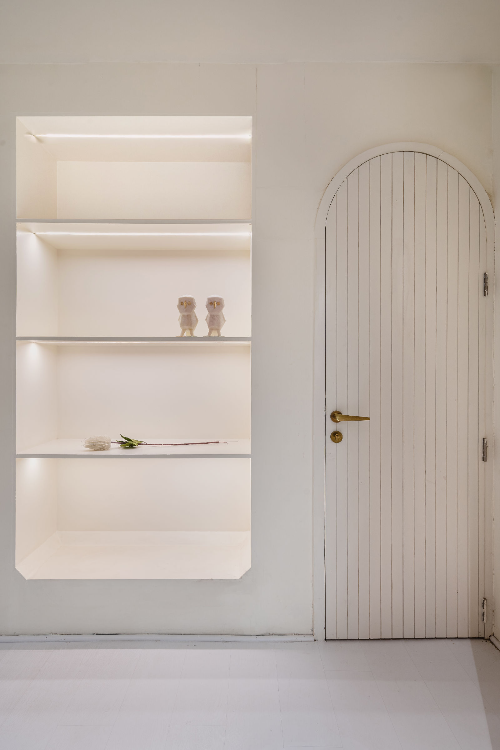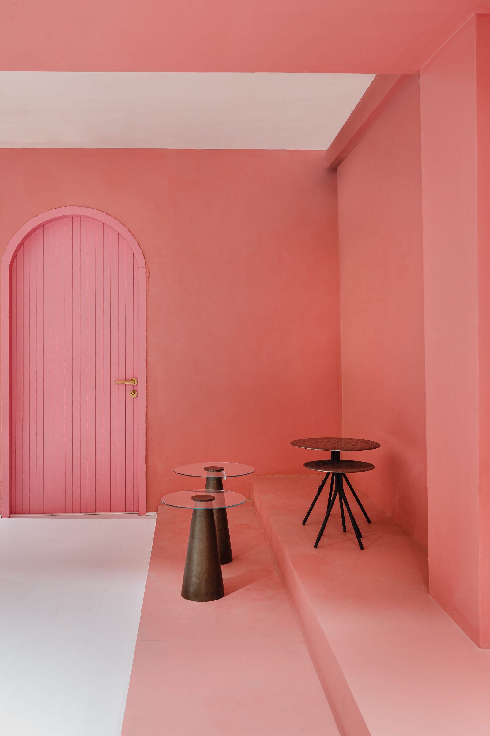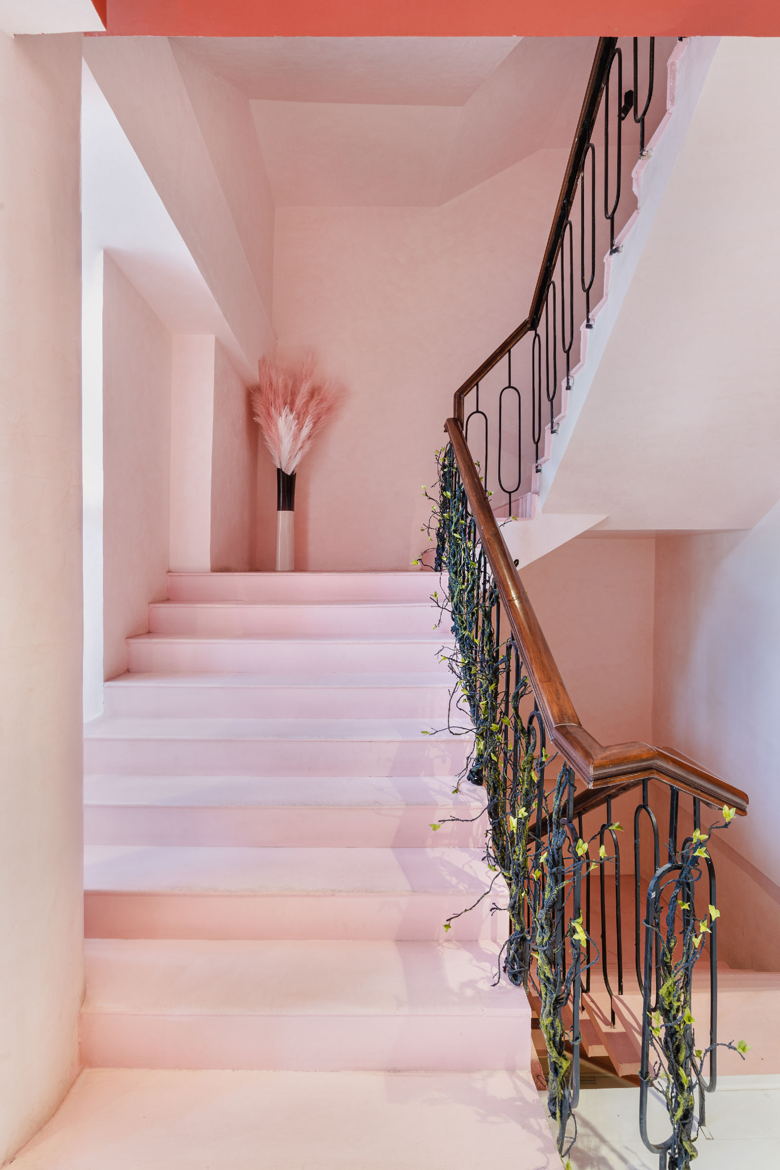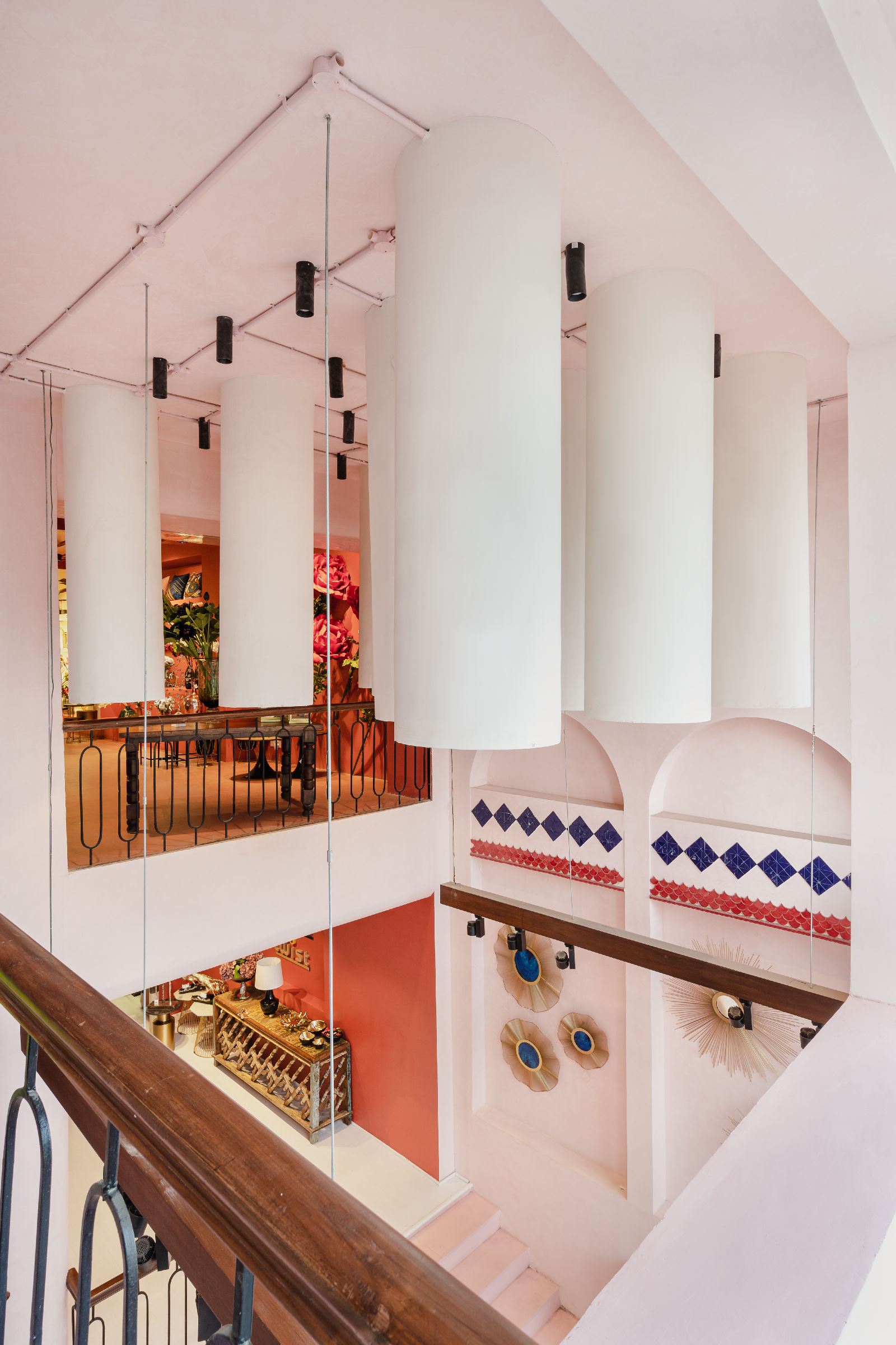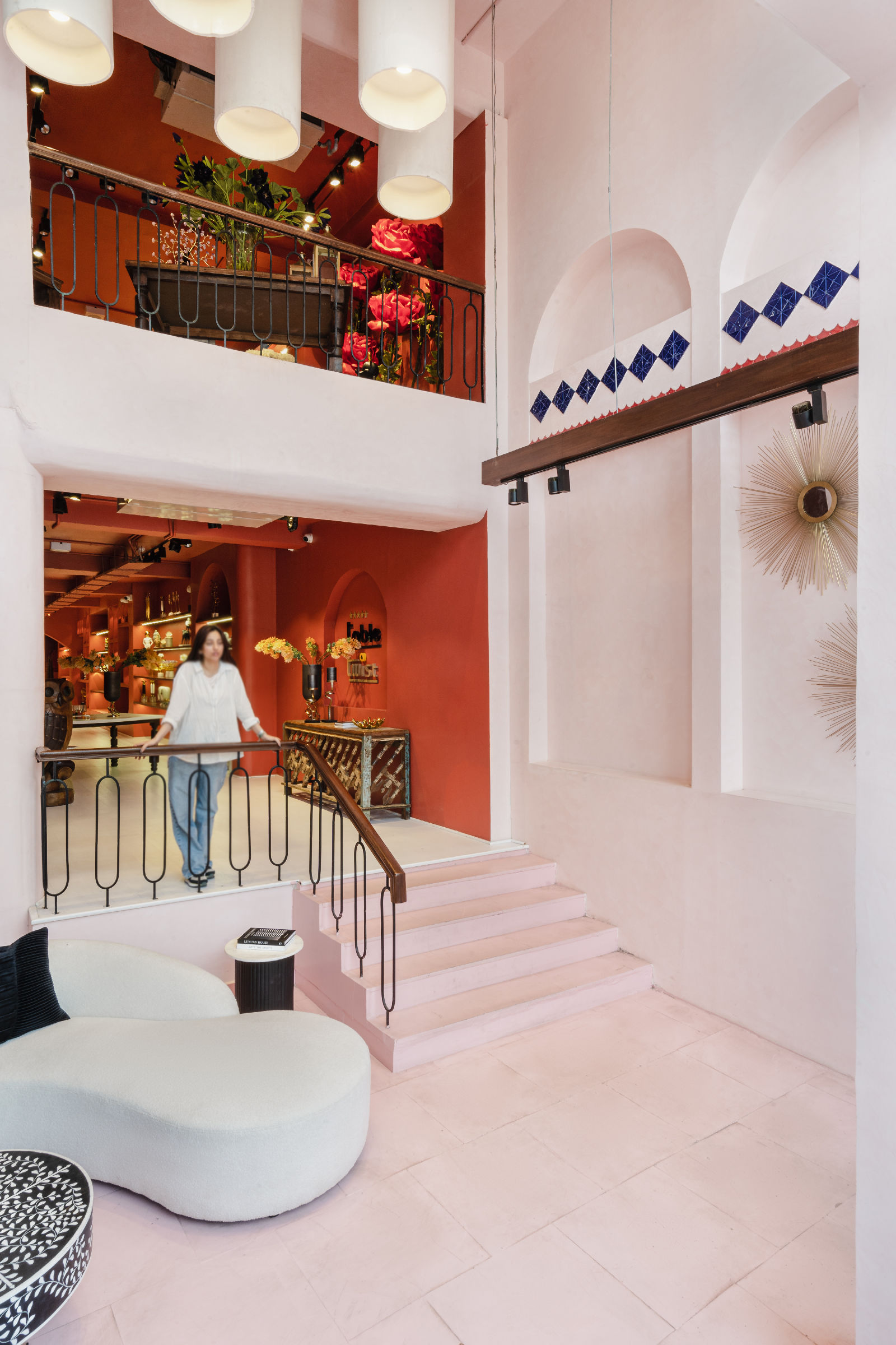 A contemporary interior where structural pillars became sculptural statements, paired with arches, curves, and layered textures for a uniquely fluid design.