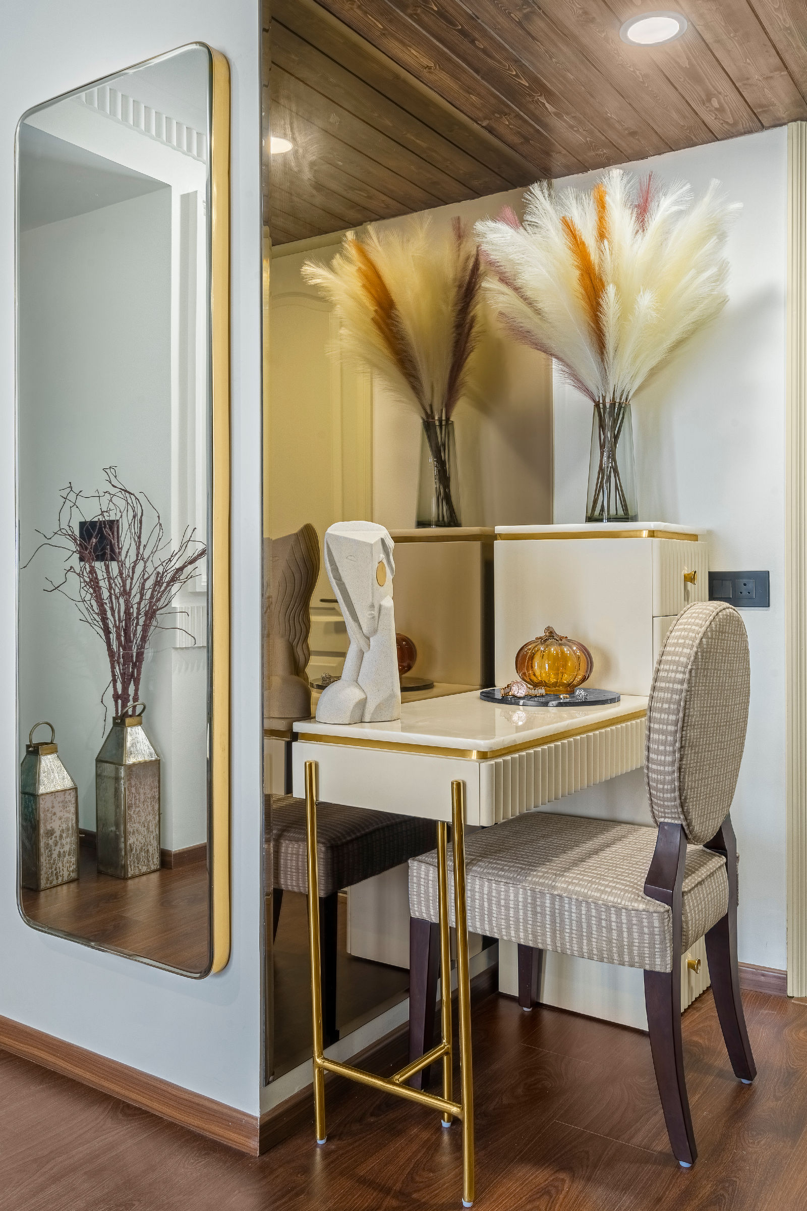 Plants, art, and carefully chosen décor completed the look, giving each room its own personality while keeping the overall story cohesive. Expert interior designing in Gurgaon guided every styling decision, maintaining harmony across zones and achieving a thoughtfully curated home interior design Gurgaon that balances lifestyle-driven functionality with expressive detailing.